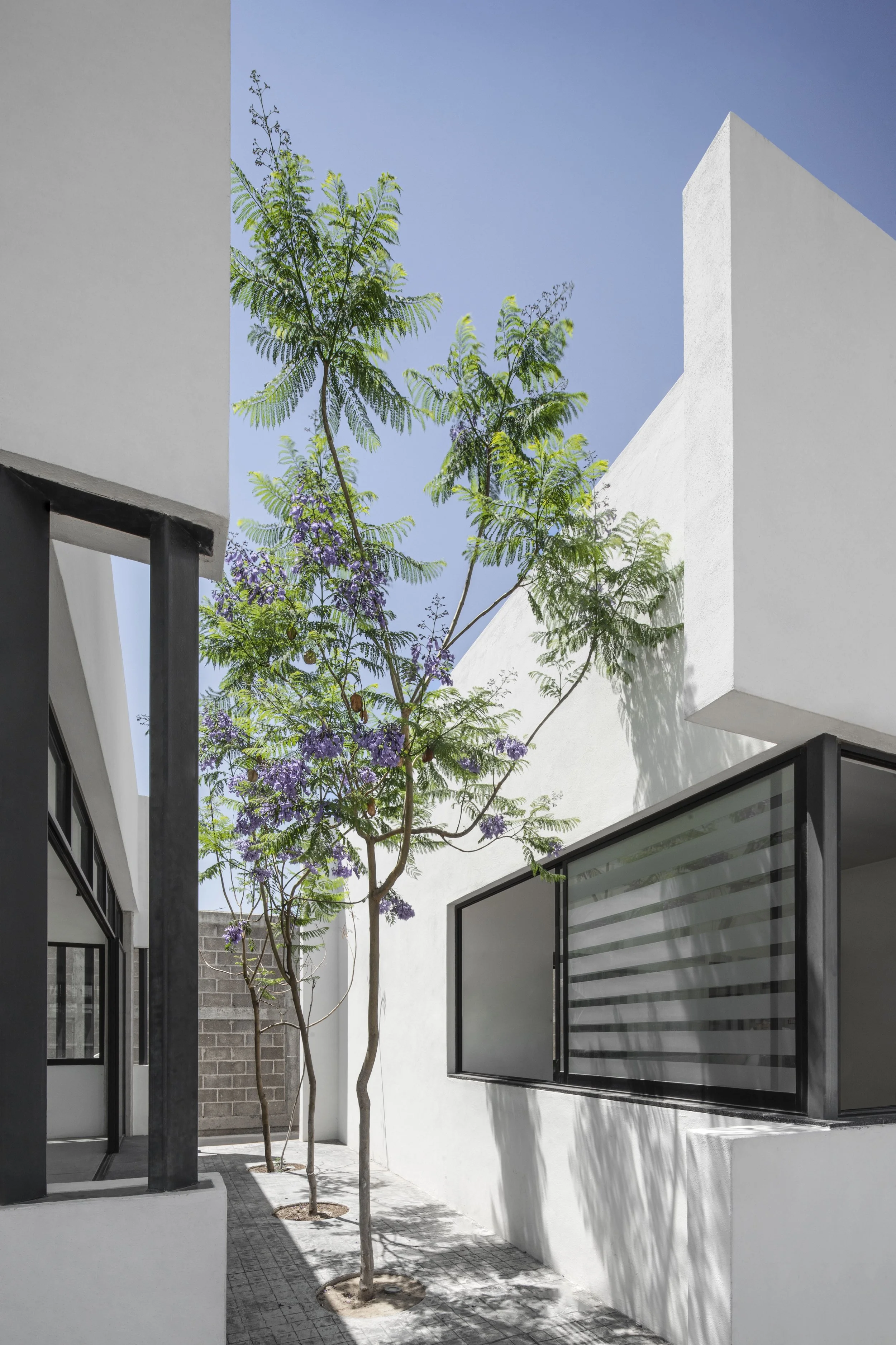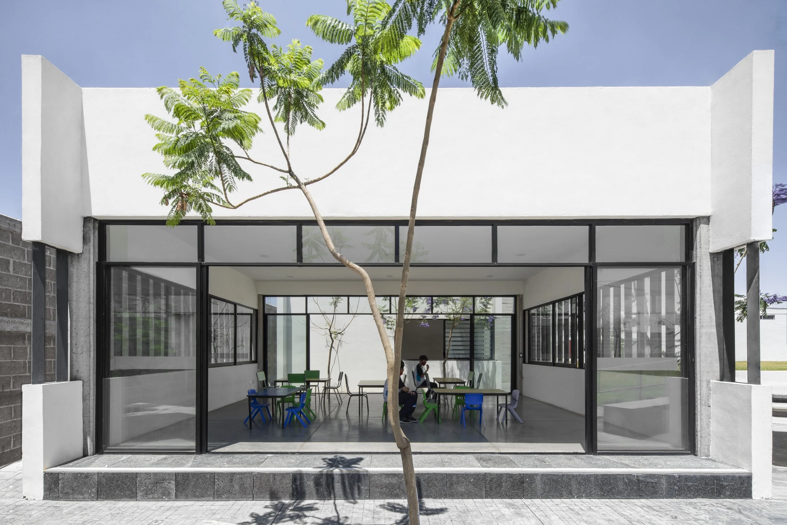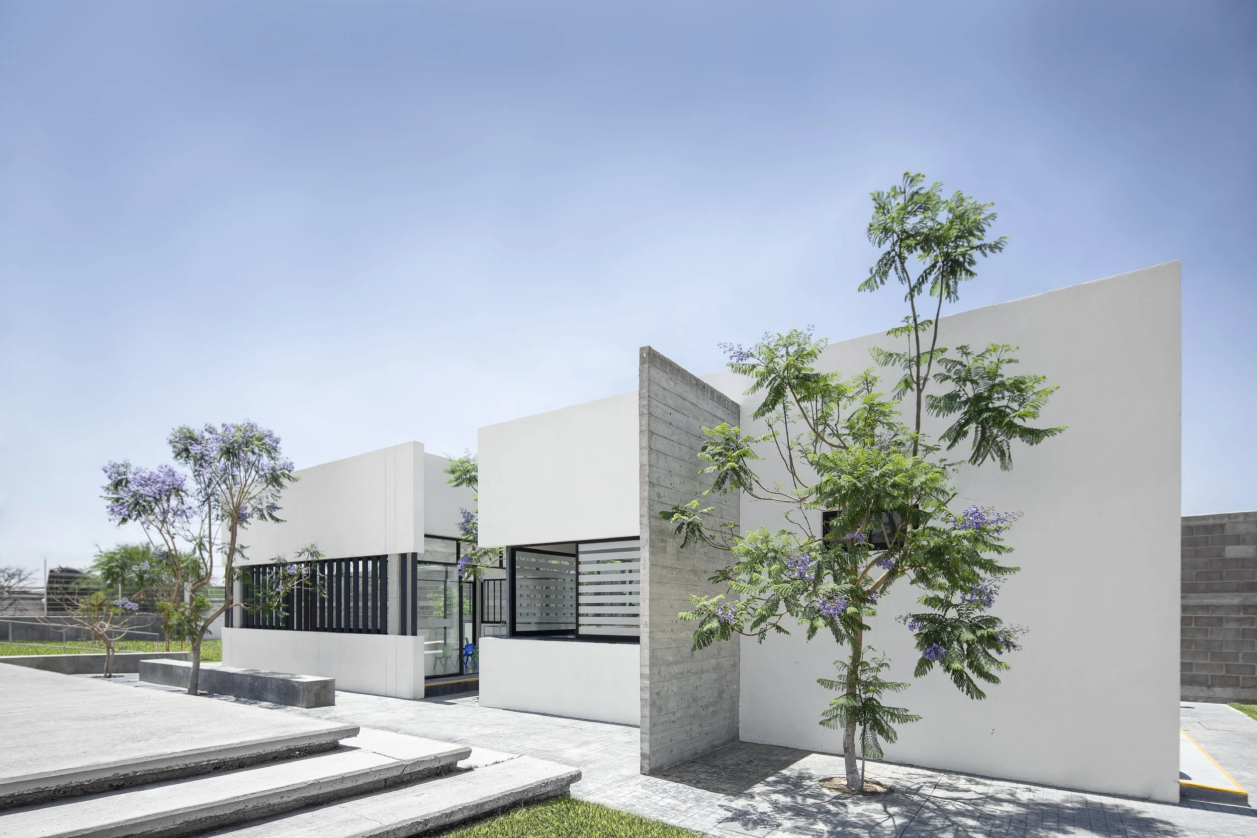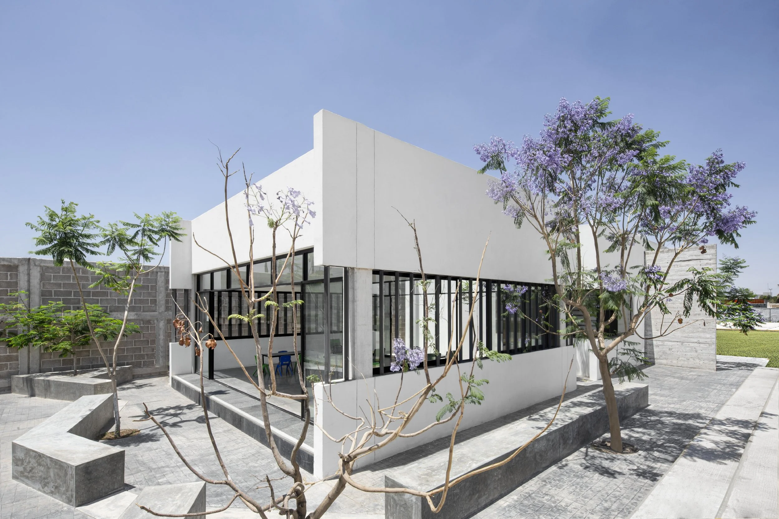 La ventilation naturelle et la maîtrise des apports solaires assurent un confort thermique durable. À l’extérieur, des bancs prolongent les espaces de vie, offrant aux enfants des lieux d’échange et de pause, en continuité avec l’architecture.