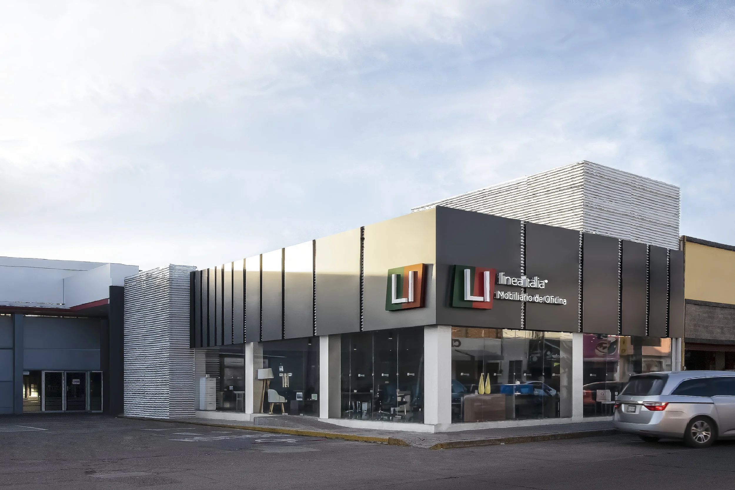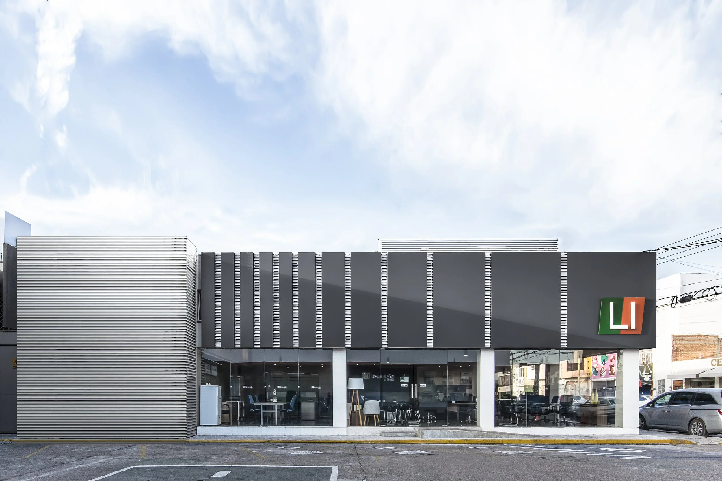 Conçu pour une entreprise de mobilier de bureau, L-I s’implante en continuité directe de l’usine existante afin d’en révéler l’activité et le savoir-faire. L’architecture ne masque pas la production : elle la met en scène, offrant à l’usine une nouvelle façade et une visibilité affirmée.