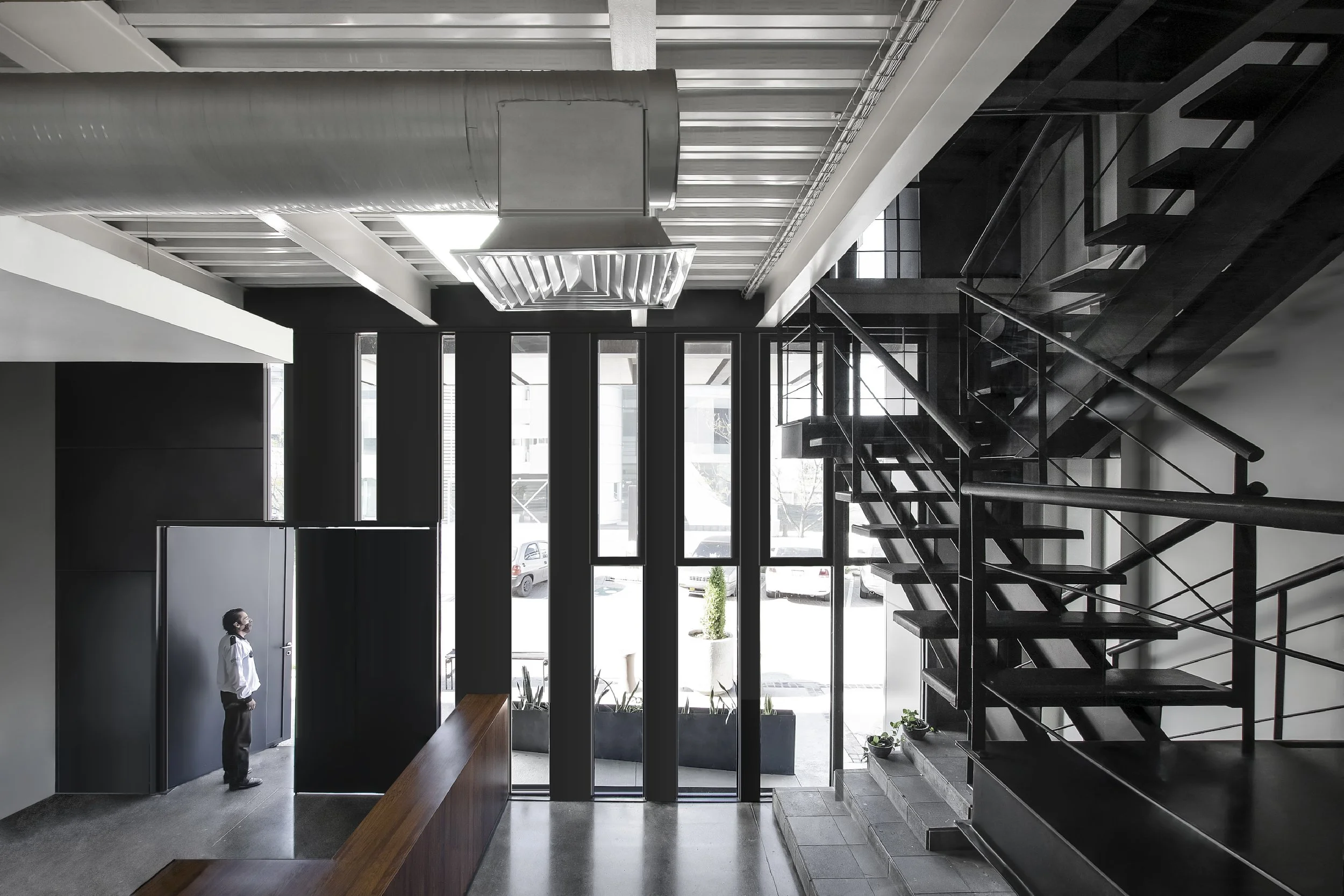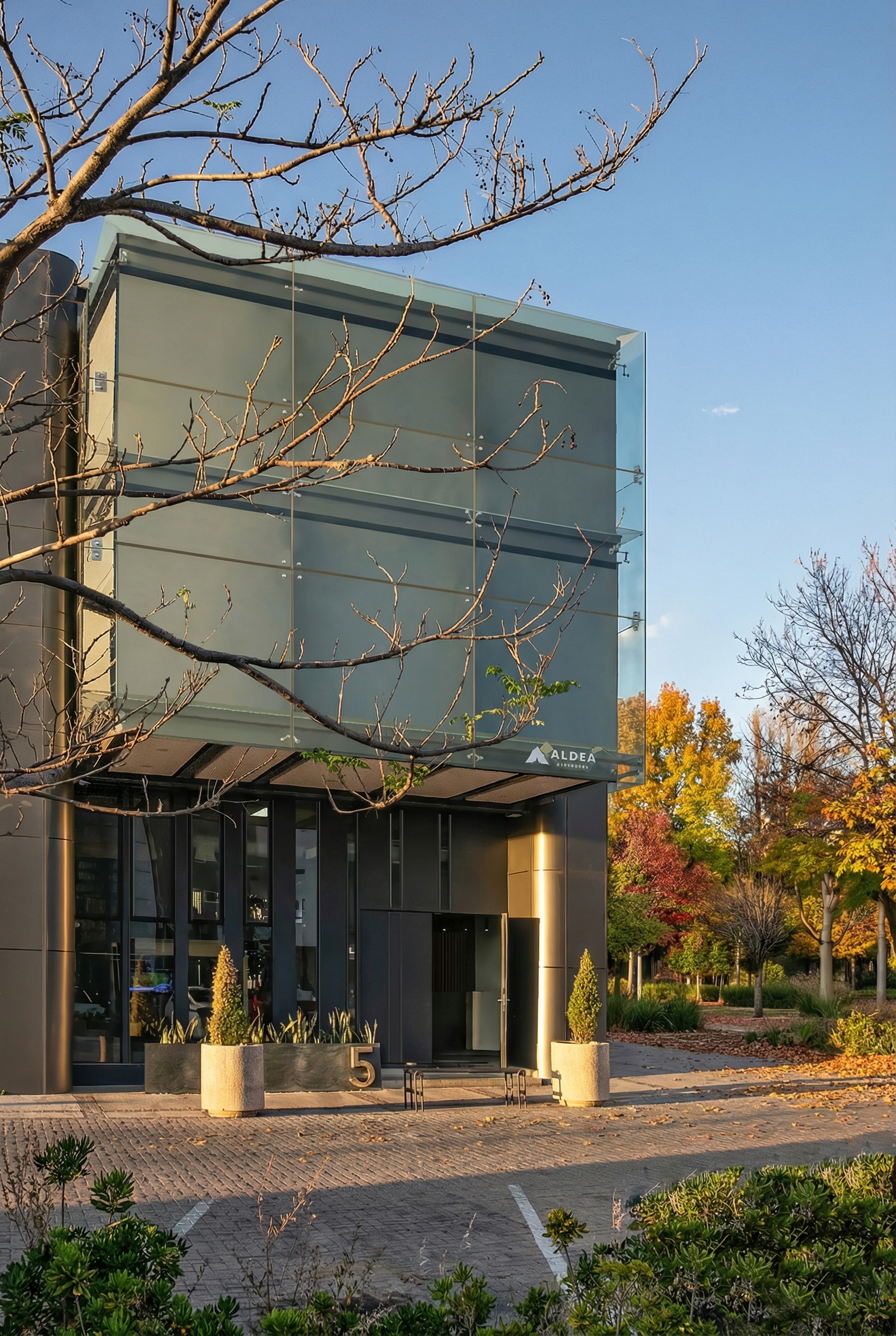 Un immeuble de bureaux qui affirme son expression structurelle à travers un volume en porte-à-faux sur sa façade principale. Ce geste architectural marque l’entrée et confère au bâtiment une identité forte et contemporaine.